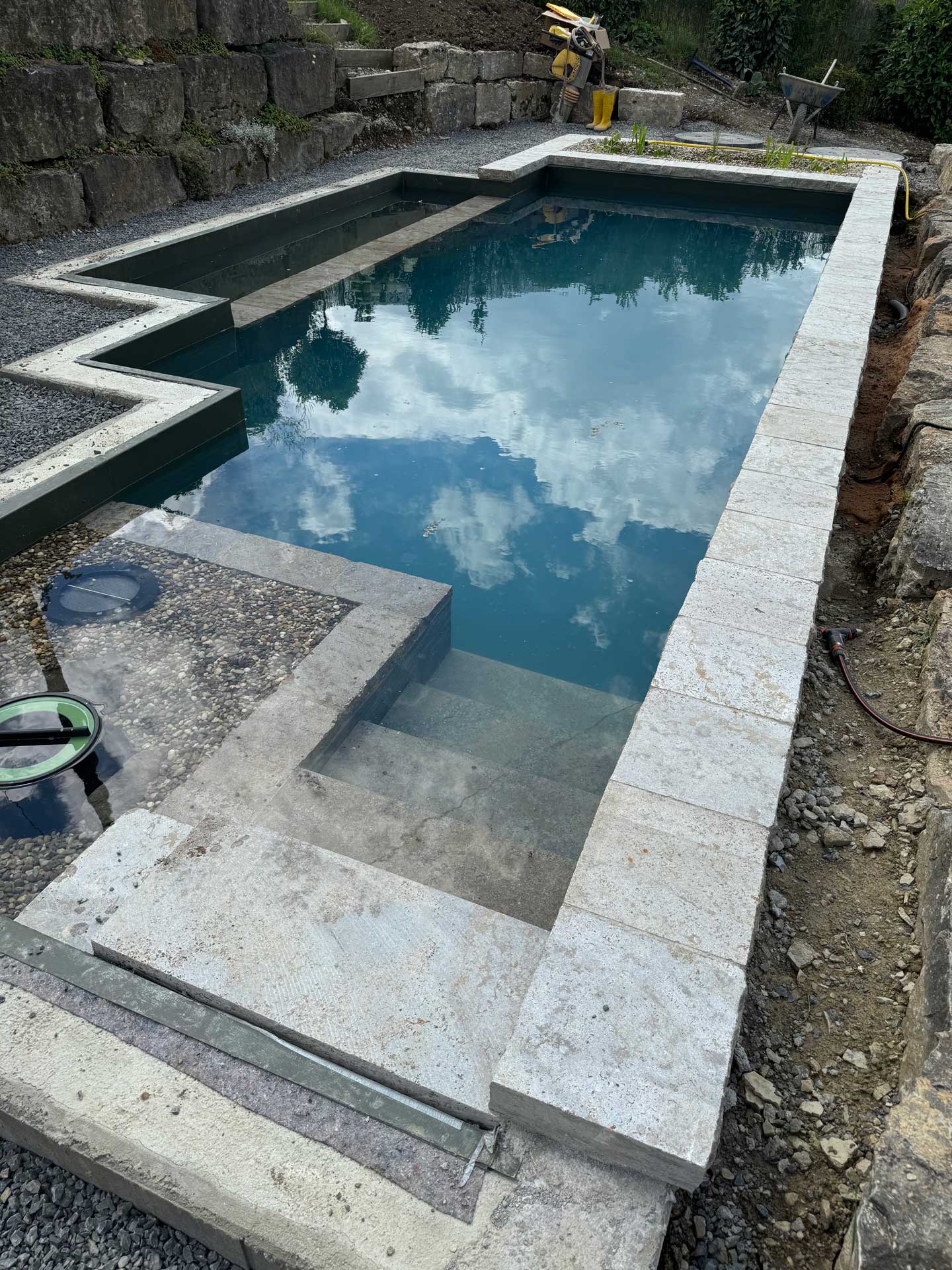 The pool is filled with water, and the entire system is tested to ensure everything functions perfectly.